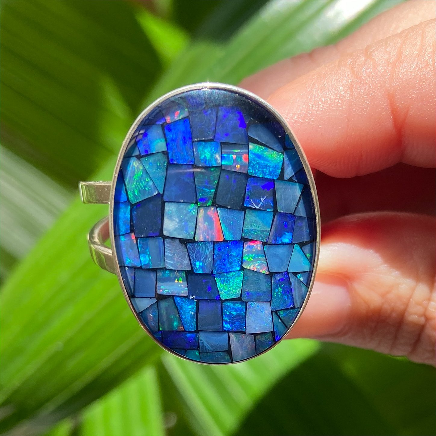 O Mosaico de Opala é uma peça feita de pequenos fragmentos de opala que são cortados e agrupados em um padrão, como um mosaico. Esses fragmentos podem ser de diferentes cores e formas, criando um efeito visual interessante e único. Essa técnica é geralmente usada para criar peças de joias exclusivas, combinando as cores vibrantes da opala com a criatividade do design. É uma forma de aproveitar os fragmentos que, individualmente, não teriam tamanho suficiente para as joias, mas que, juntos, formam algo impressionante.
