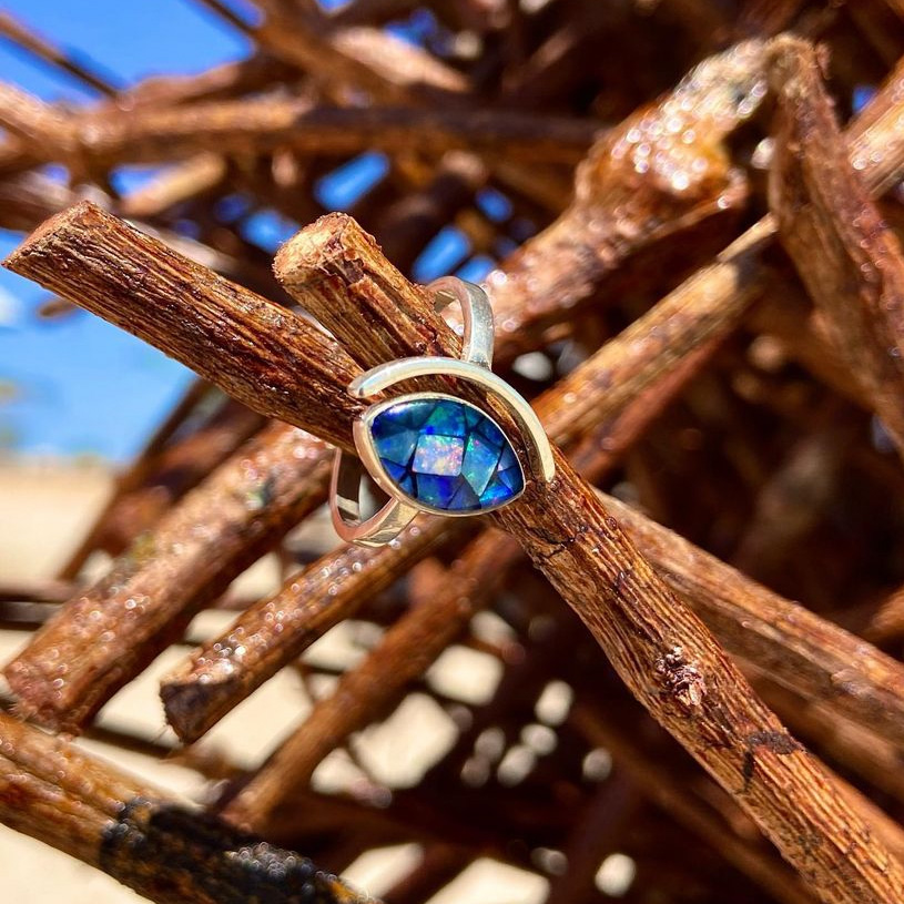Feito à mão com prata 950 e mosaico de opala natural de Pedro II – PI.