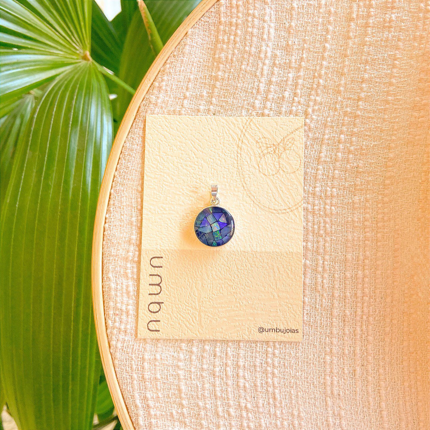 Pingente confeccionado artesanalmente com prata 950 e mosaico de opala.